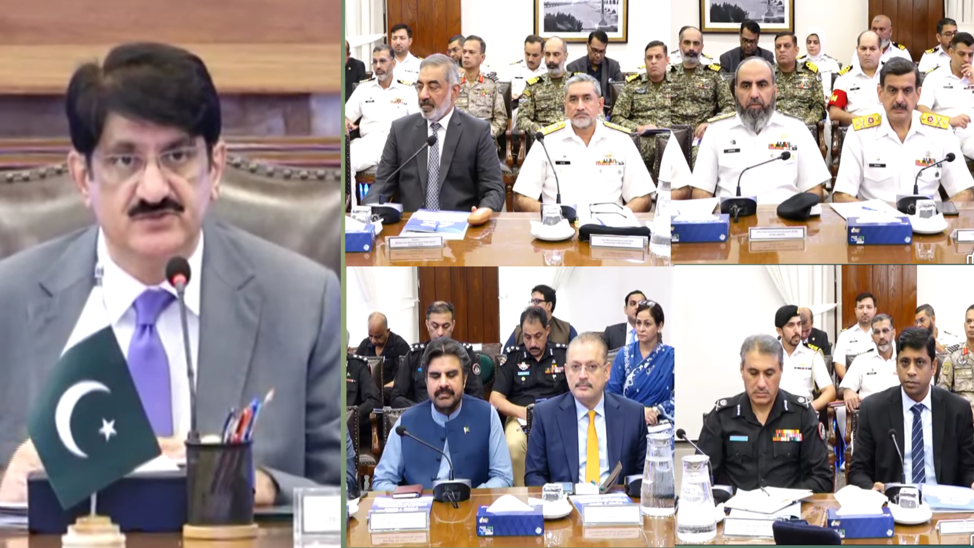 اجلاس میں کمانڈر کراچی وائس ایڈمرل محمد فیصل عباس، صوبائی وزراء شرجیل انعام میمن، سید ناصر حسین شاہ، ذوالفقار علی شاہ، جام اکرم اللہ دھاریجو، میئر کراچی مرتضیٰ وہاب، چیف سیکریٹری آصف حیدر شاہ، آئی جی پولیس غلام نبی میمن سمیت سندھ حکومت اور پاکستان نیوی کے سینئر افسران شریک ہوئے۔